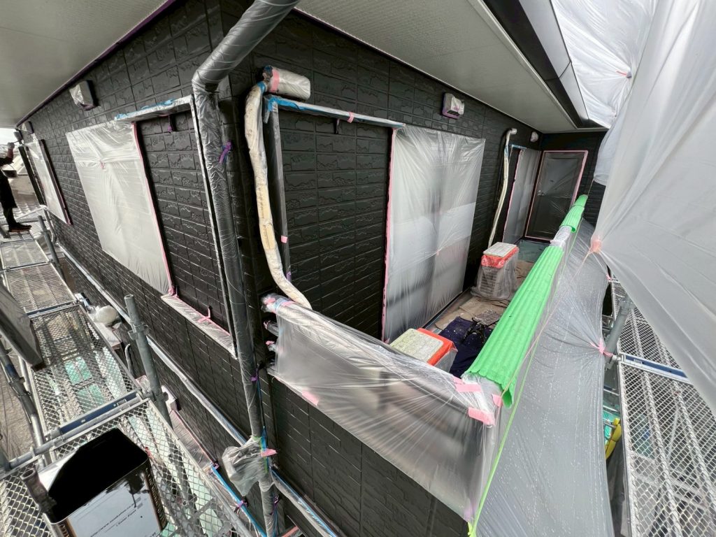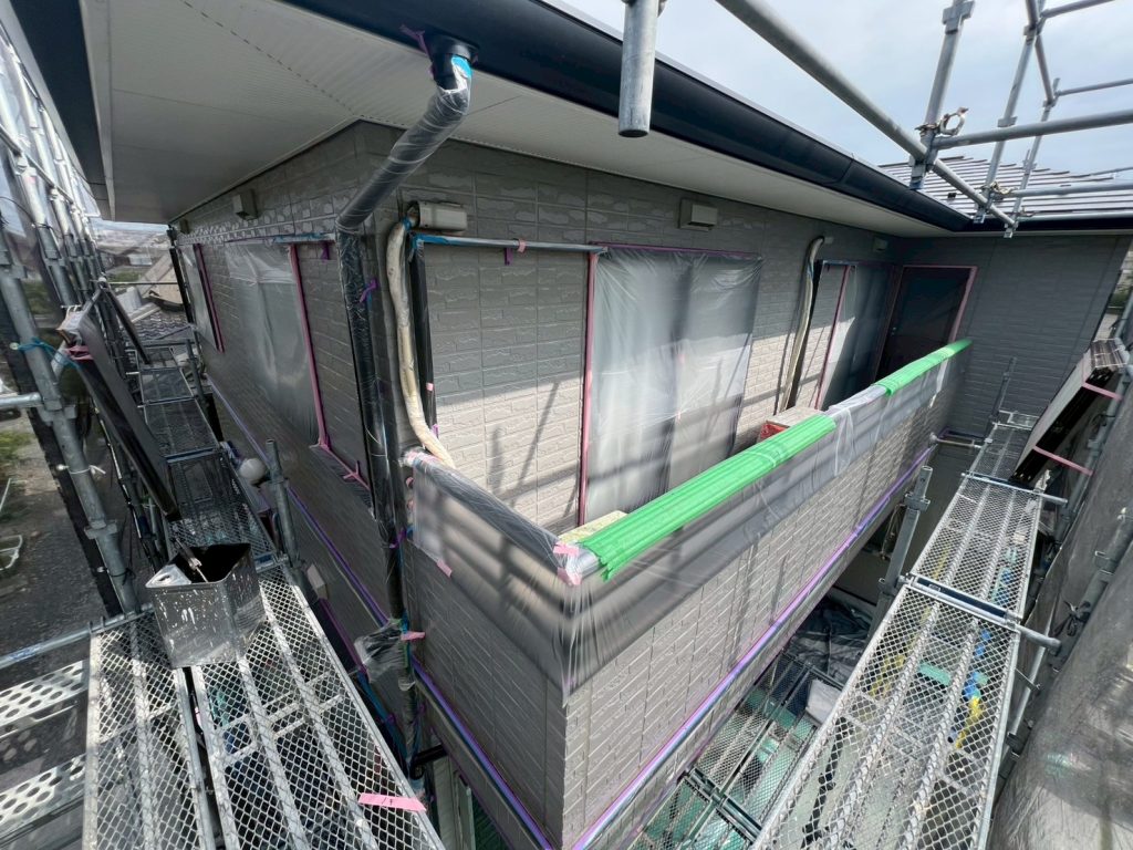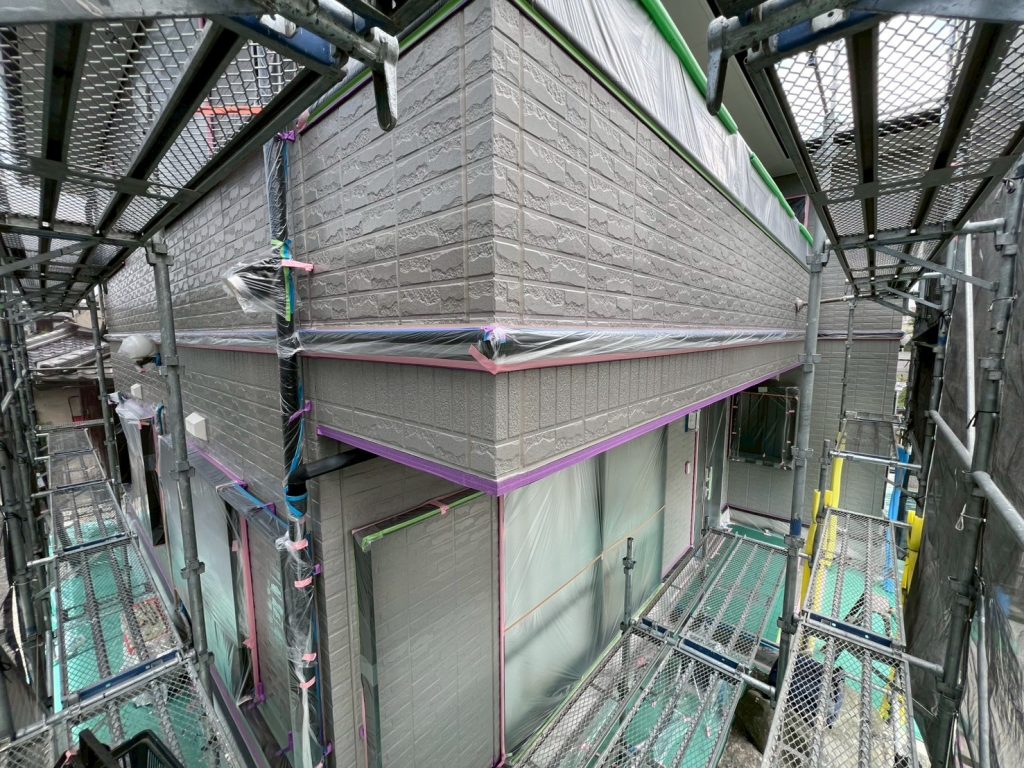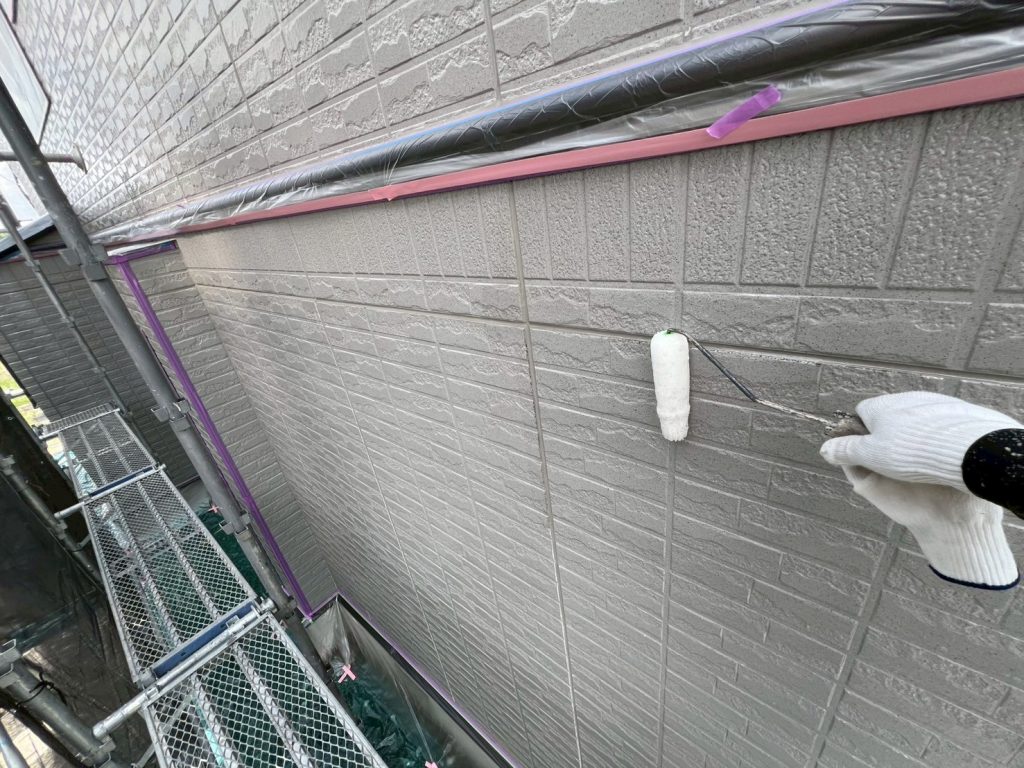 下塗りが完了した後、次は外壁の中塗り作業に入ります。