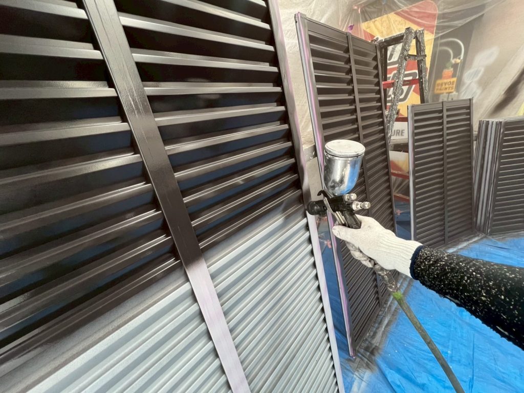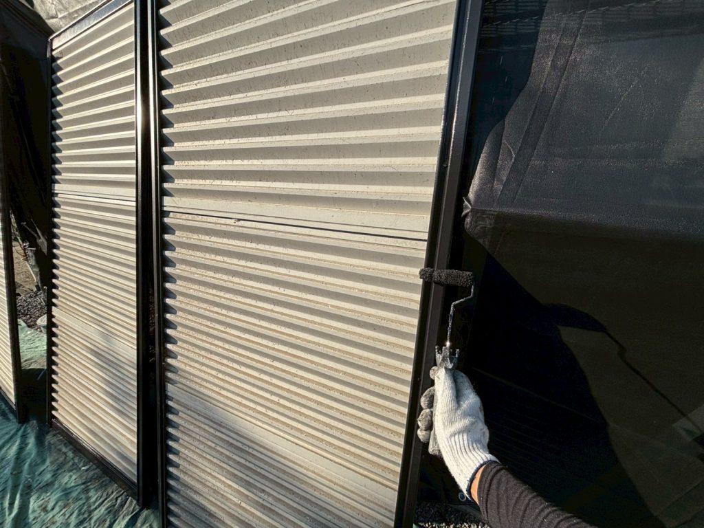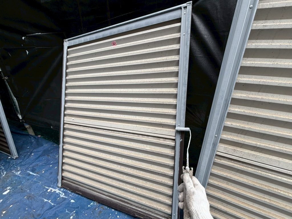 今回の雨戸は、周りの枠部分まで塗装するタイプのため、まずは裏側を先に塗装していきます。