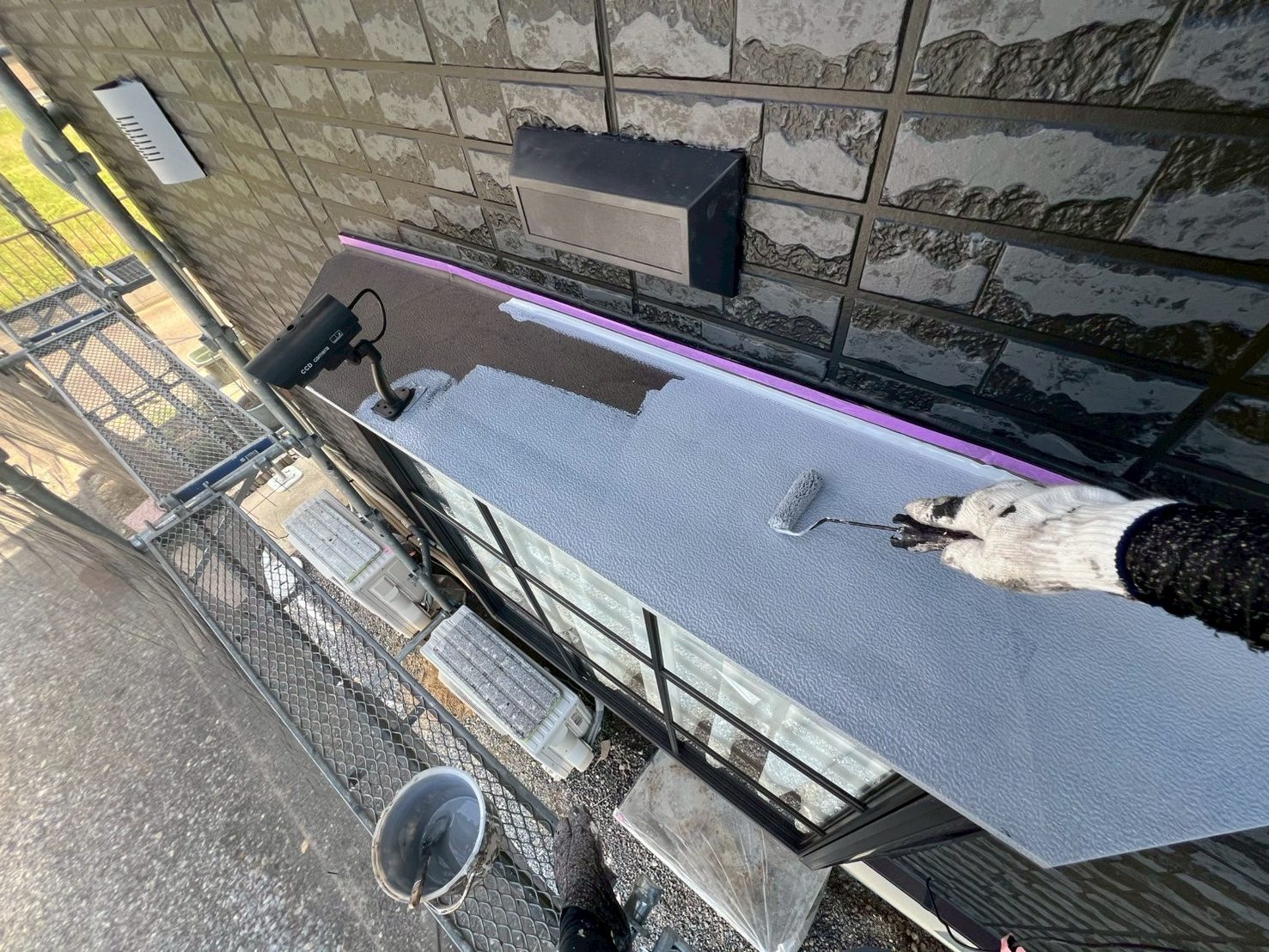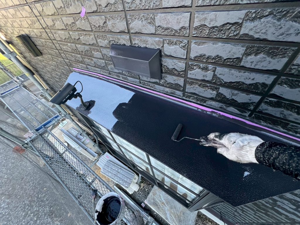 塗りがしっかり乾燥した後、屋根の中塗り作業を行います。