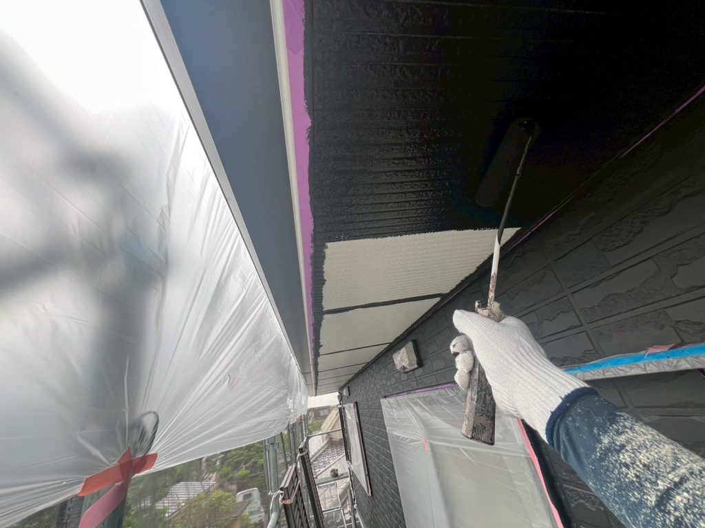 屋根は紫外線や雨風の影響を最も受けやすい部分でもあるため、下地の状態を確認しながら塗料がしっかりと浸透するよう丁寧に塗り込んでいきます。