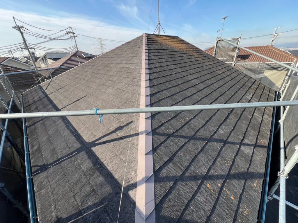 こうして塗装工程を重ねることで、屋根全体が綺麗に仕上がり、建物を長く守る丈夫な塗膜が完成します。