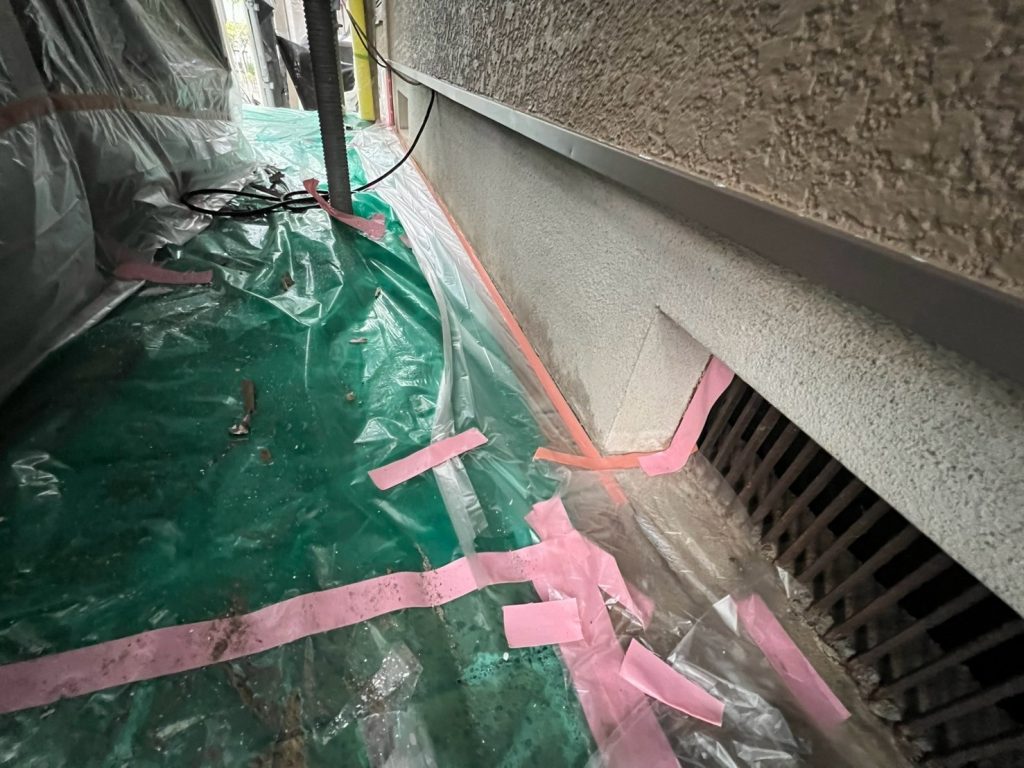 この養生作業をしっかりと行うことで、塗装面のラインも美しく仕上がり、建物全体を綺麗に仕上げるための重要な準備工程となります。