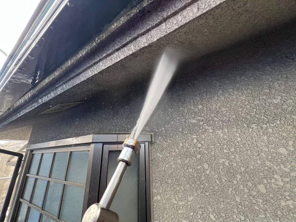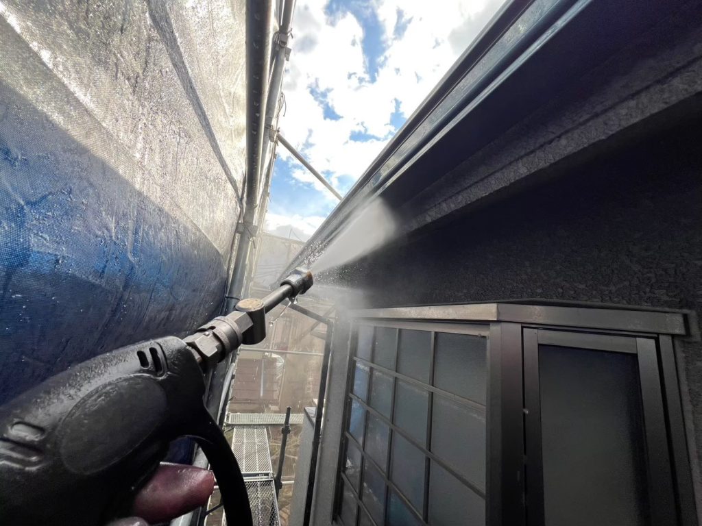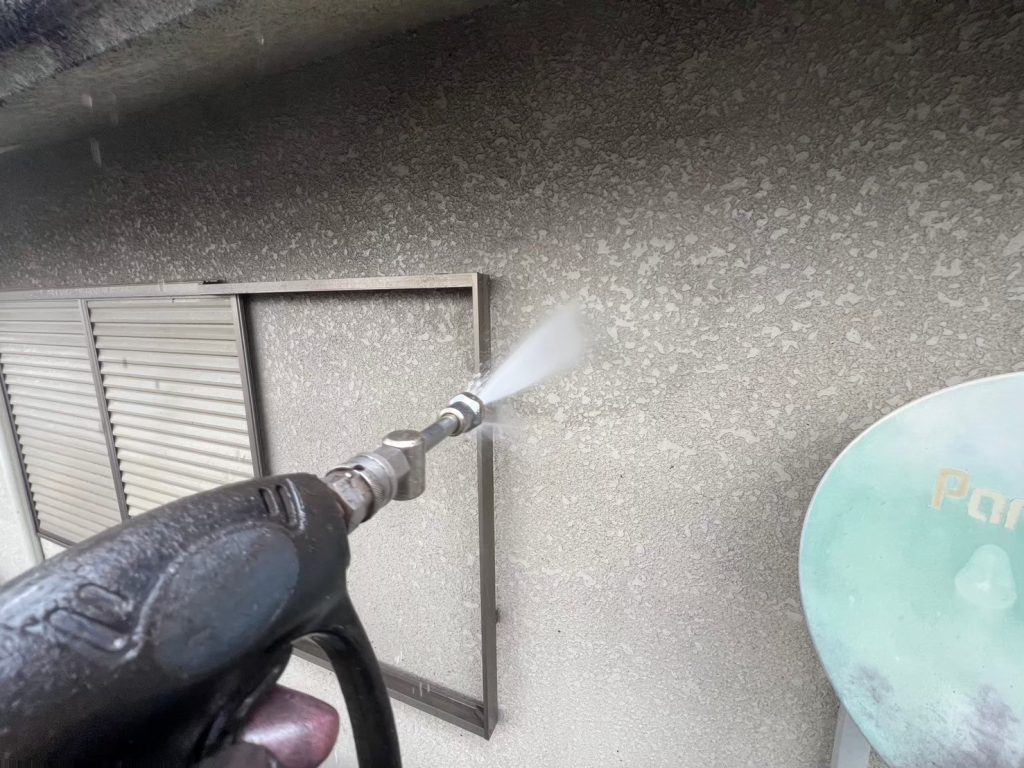 コーキング材がしっかりと硬化したことを確認してから、次の工程である高圧洗浄を行います。