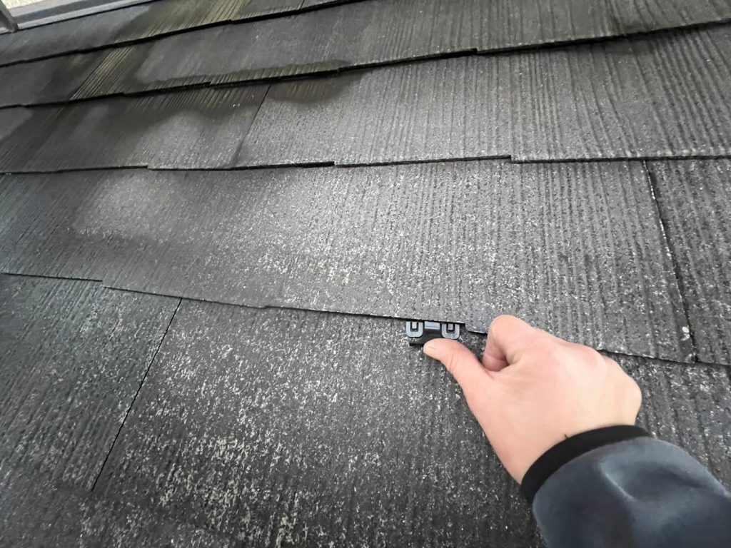まず最初に、屋根材の重なり部分にタスペーサーを取り付けていきます。