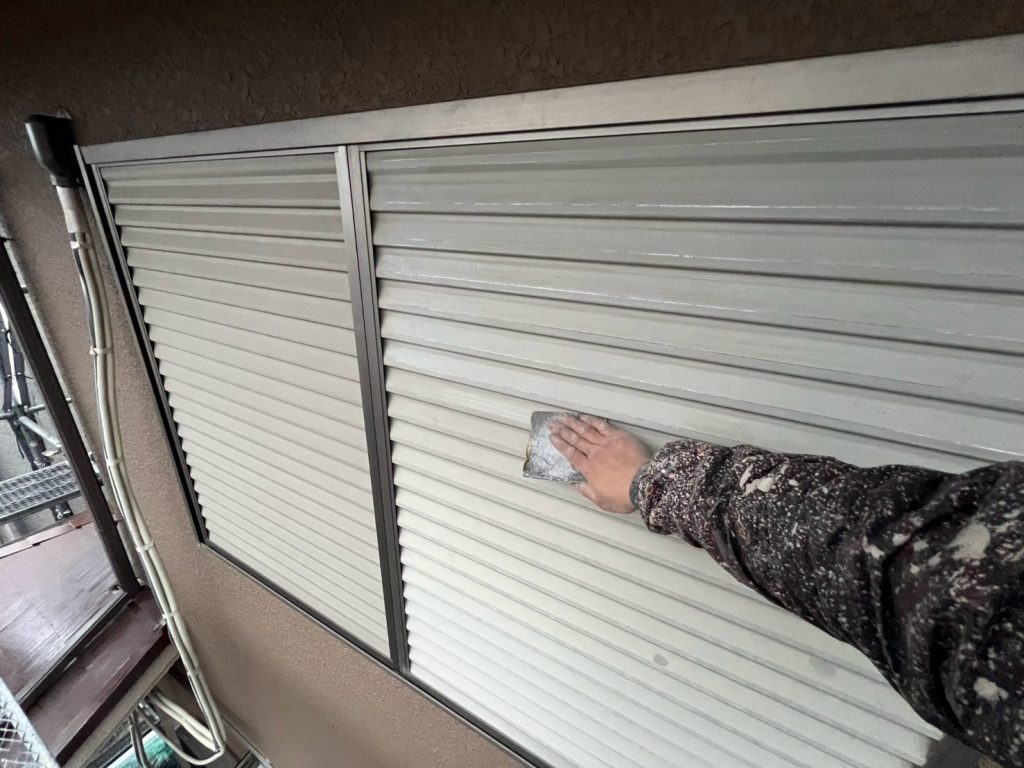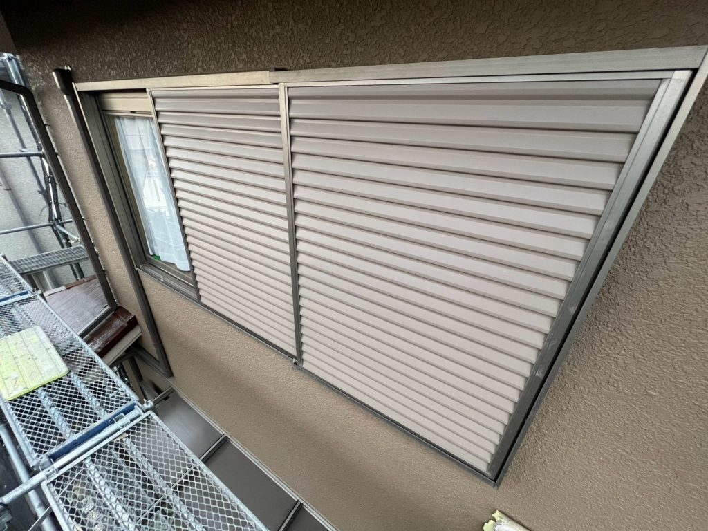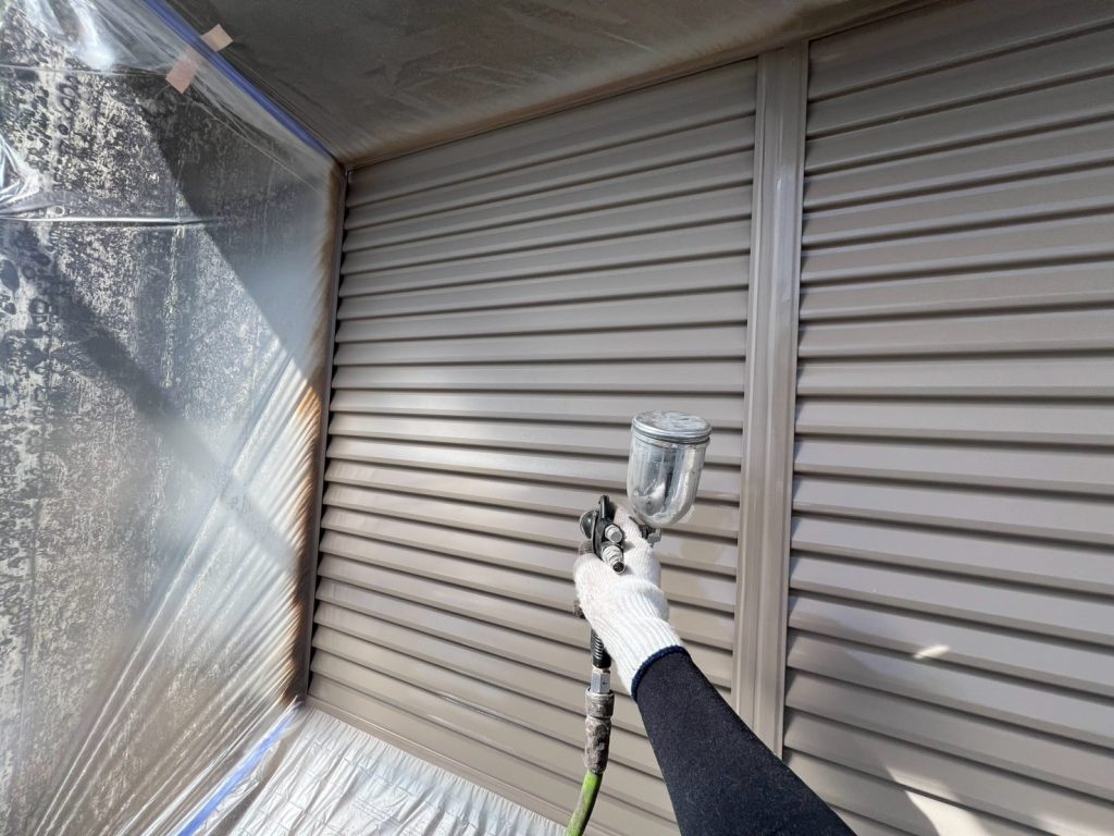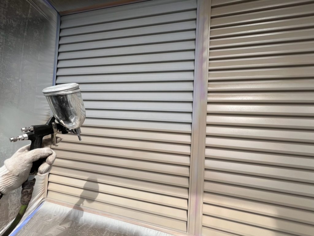 雨戸は形状的に凹凸が多く、ローラー塗装では塗料が均一に入りにくい場合があります。そのため、今回は吹付塗装を行うことで細かな部分までしっかりと塗料を行き渡らせ、均一で美しい仕上がりになるよう施工しました。