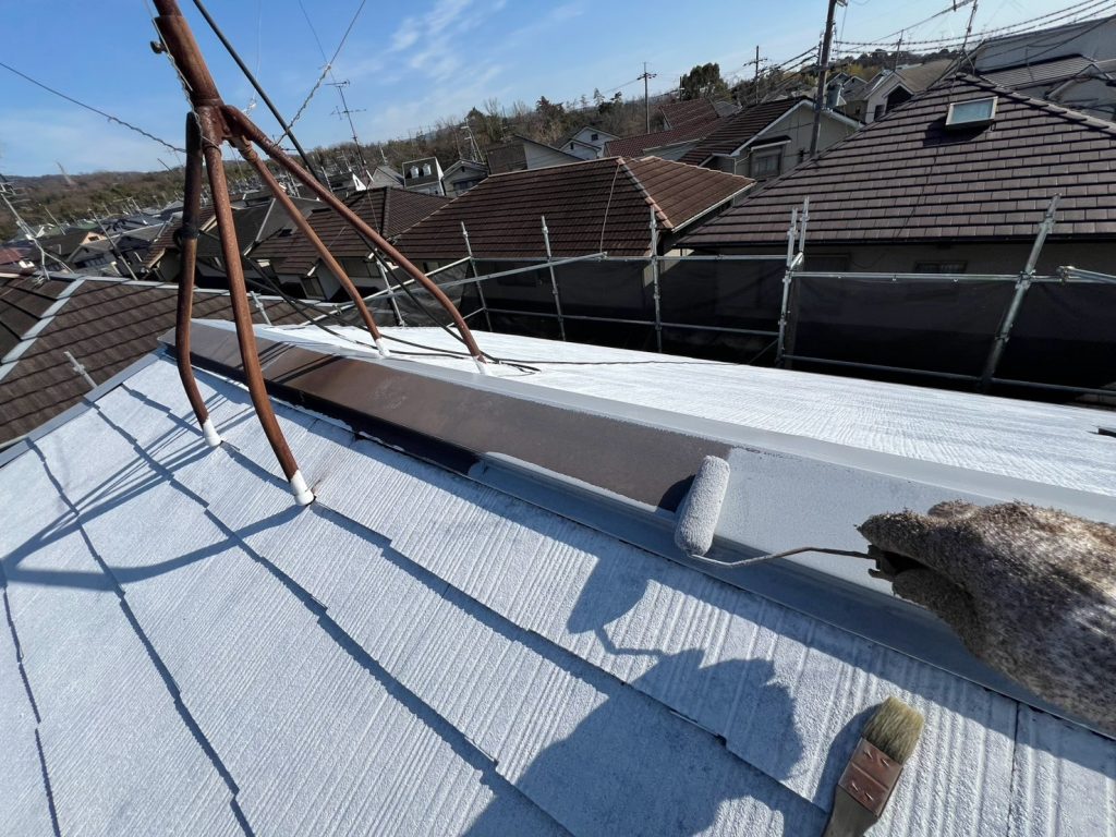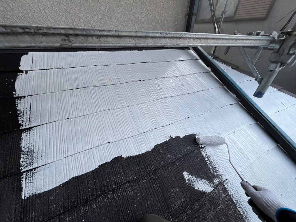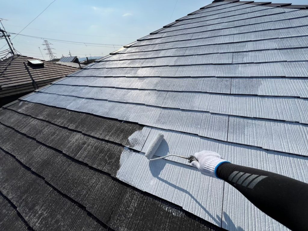 今回は遮熱塗料を使用しているため、太陽光を反射し屋根の表面温度の上昇を抑える効果が期待できます。これにより、夏場の屋根の蓄熱を軽減し、建物内部への熱の伝わりを抑える役割があります。