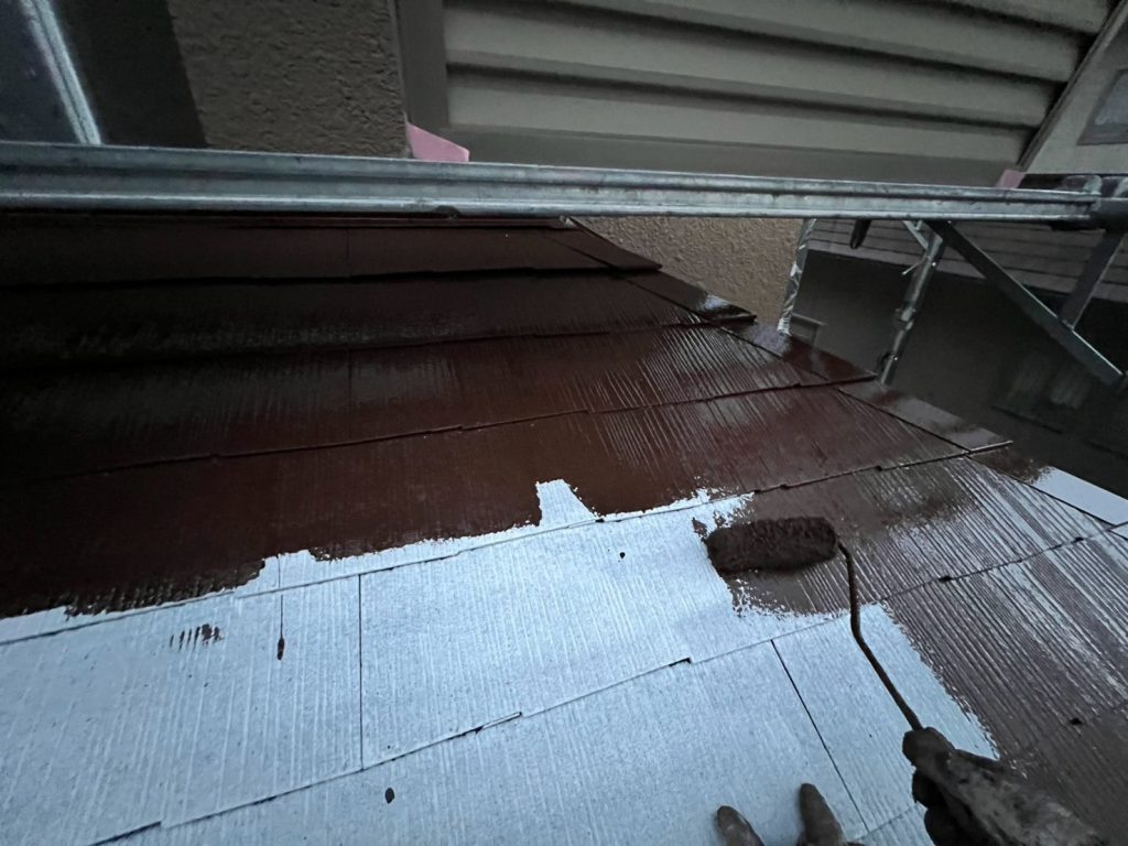 その後、カラーベスト部分には屋根専用の下塗り材を使用して下塗りを行います。