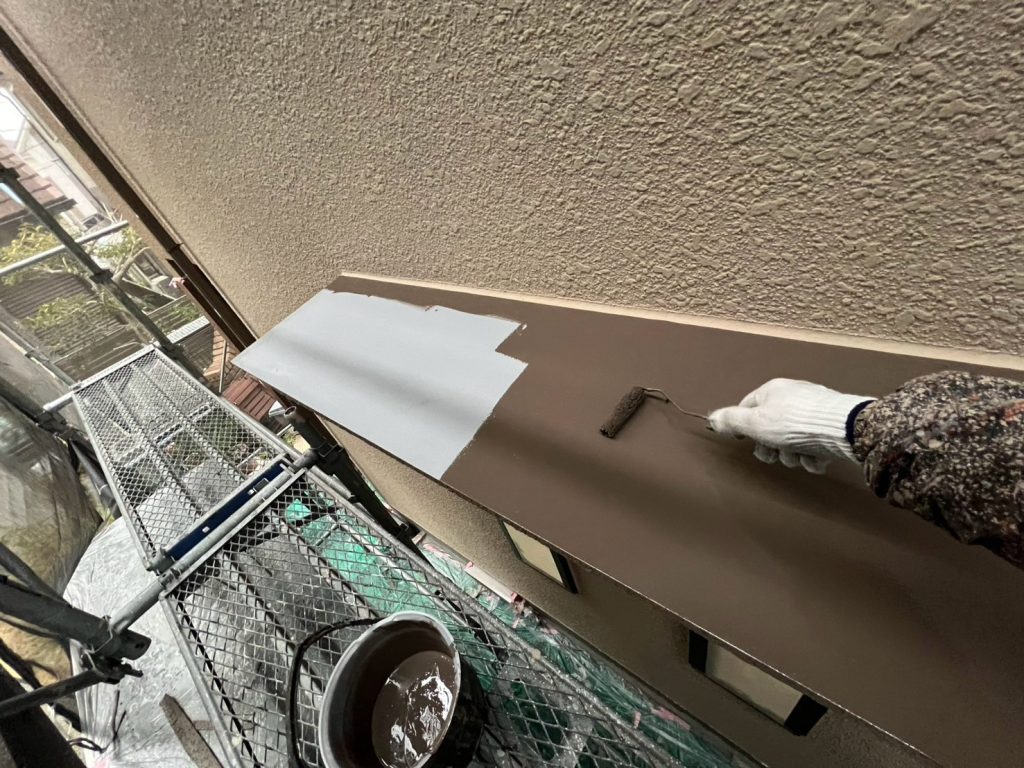 上塗りでは、中塗りで形成した塗膜の上からもう一度塗料を塗り重ね、塗膜の厚みをしっかりと確保していきます。これにより、塗料本来の耐久性や防水性、そして美しい仕上がりを最大限に引き出すことができます。