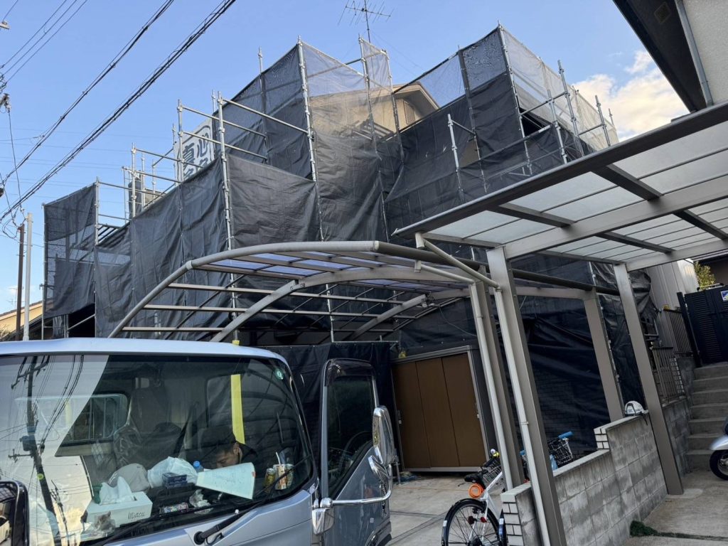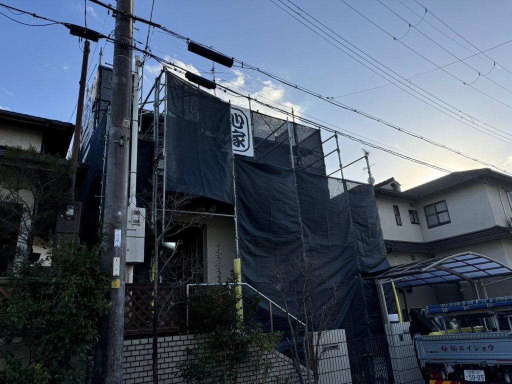 また、足場には飛散防止メッシュシートを設置することで、塗料や埃などの飛散を抑え、近隣の方への配慮や安全面の確保にも繋がります。